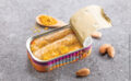Ingredientes: Filetes de caballa, agua, aceite de colza, pimientos rojos, vinagre de alcohol, mostaza (agua, semillas de mostaza , vinagre de alcohol, sal, anti-oxígeno: bisulfitos de sodio , acidificante: ácido cítrico), cebollas, aceite de oliva virgen extra, leche de coco, almendras tostadas, plantas aromáticas, especias que incluyen curry ( leche y semillas de mostaza ), sal , almidón de yuca, espesantes: goma xantana, extracto de levadura.
