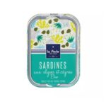 Ingredientes: sardina (mín. 70%), aceite de oliva (29%), aroma de humo (0,3%), aroma natural de pimienta de cayena (0,8%) y sal.